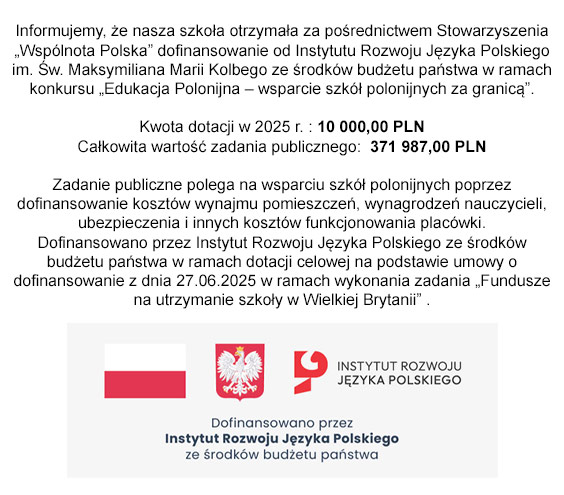 Nazwa zadania publicznego: Szkoła (bardziej) polska. Wsparcie bieżącej działalności szkół polonijnych w Szkocji i Irlandii Północnej w latach 2022-2023.